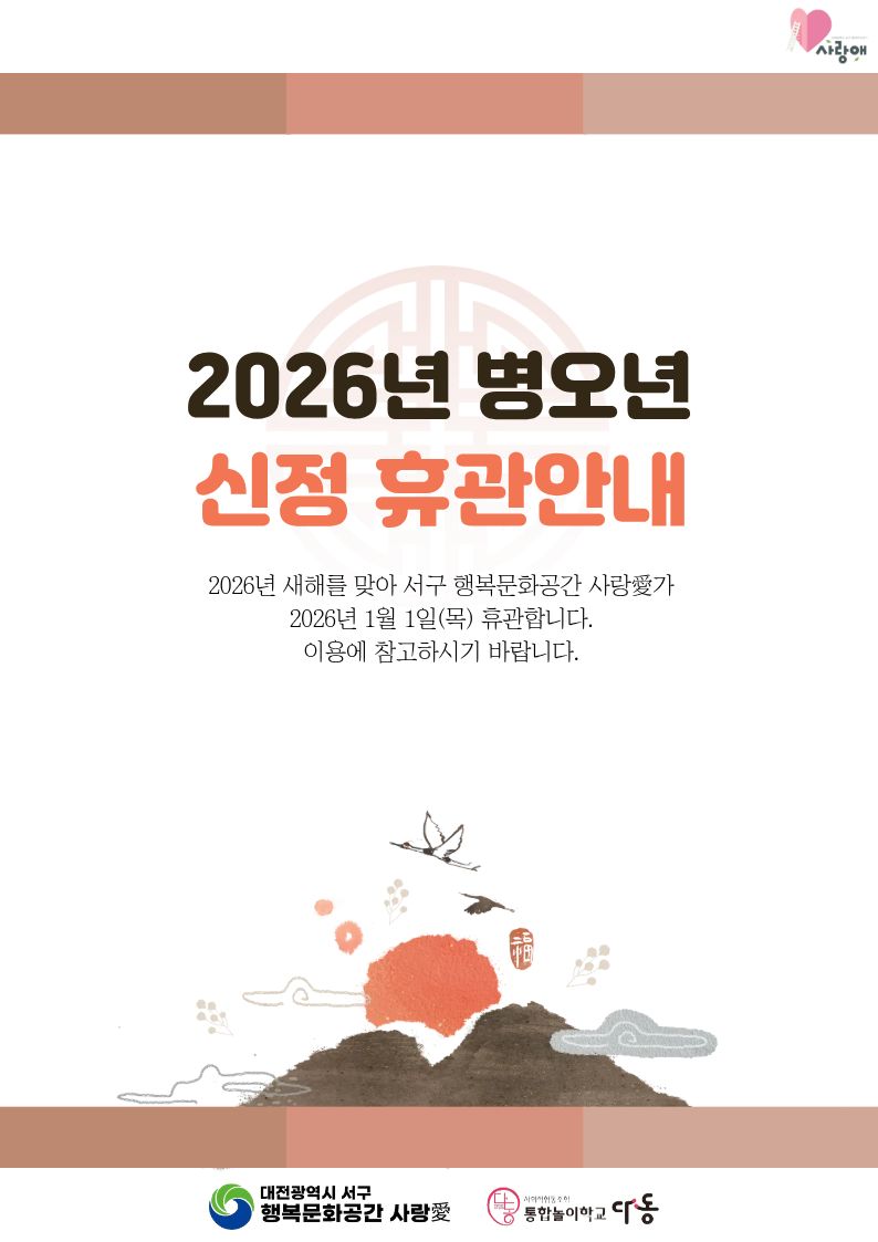 | 2026년 서구행복문화공간 사랑愛 1월 신정 휴관안내 | |||
